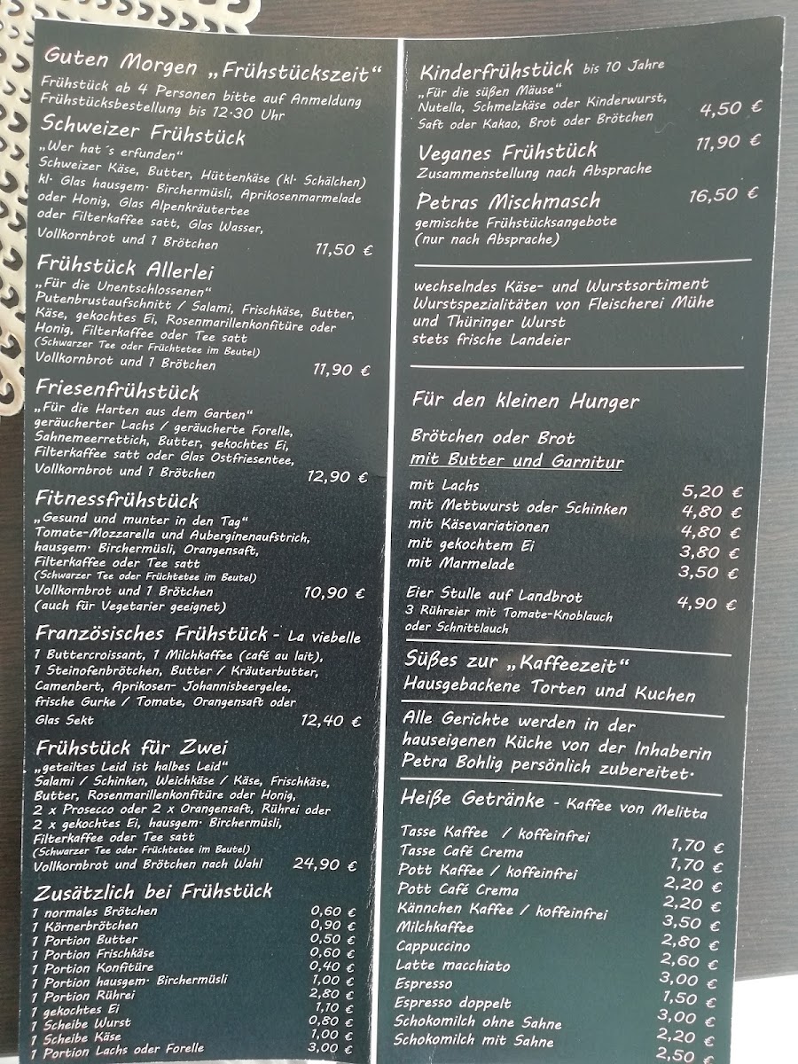 The trend continues with glowing testimonials about the attentive service provided by the owner, Petra. Her personable nature and charitable spirit make guests feel like part of the family. One visitor praised the hospitality, stating, “Die Tischdeko, sowie das Frühstück selbst war mit ganz viel Liebe gestaltet,” highlighting that the atmosphere at Petras Cafe extends beyond the food onto beautifully adorned tables. It's an experience crafted with love, or as another review remarked, “So ein liebevoll gestaltetes und leckeres Frühstück hatte ich noch nie. Petra ist super!!!”